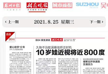 • 【姑苏晚报】12岁儿童,500度近视!医生:及时发现、及时干预很重要