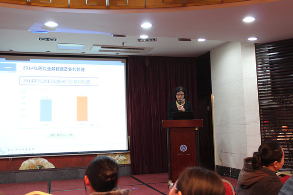 沈丽君院长代表领导班子作2014年度医院工作总结,她从全面加强医院内部管理,提高医院核心竞争力和大力拓展医院对外服务,扩大医院社会影响力等全面总结了2014年度医院取得的成绩。她表示,2014年医院在董事会的关怀和领导下,在领导班子的带领下,医院深入推进党的群众路线教育实践活动,积极开展“三型”党组织创建工作,围绕医院各项中心工作,凝心聚力,以“保障安全,提高质量,改善服务”为核心,紧紧围绕“三好一满意”活动主题,狠抓制度建设,医教研全面发展,医德医风建设常抓不懈,医疗服务水平不断提高,住院患者、门诊患者满意度不断提升。2015年是加快推进医院全面建设创新发展的关键之年。我们必须准确认清形势任务,真抓实干、开拓进取,以更高的标准、更大的干劲、更实的作风,努力实现年度工作目标。