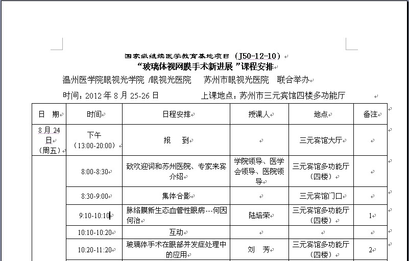 “玻璃体视网膜手术新进展”课程安排